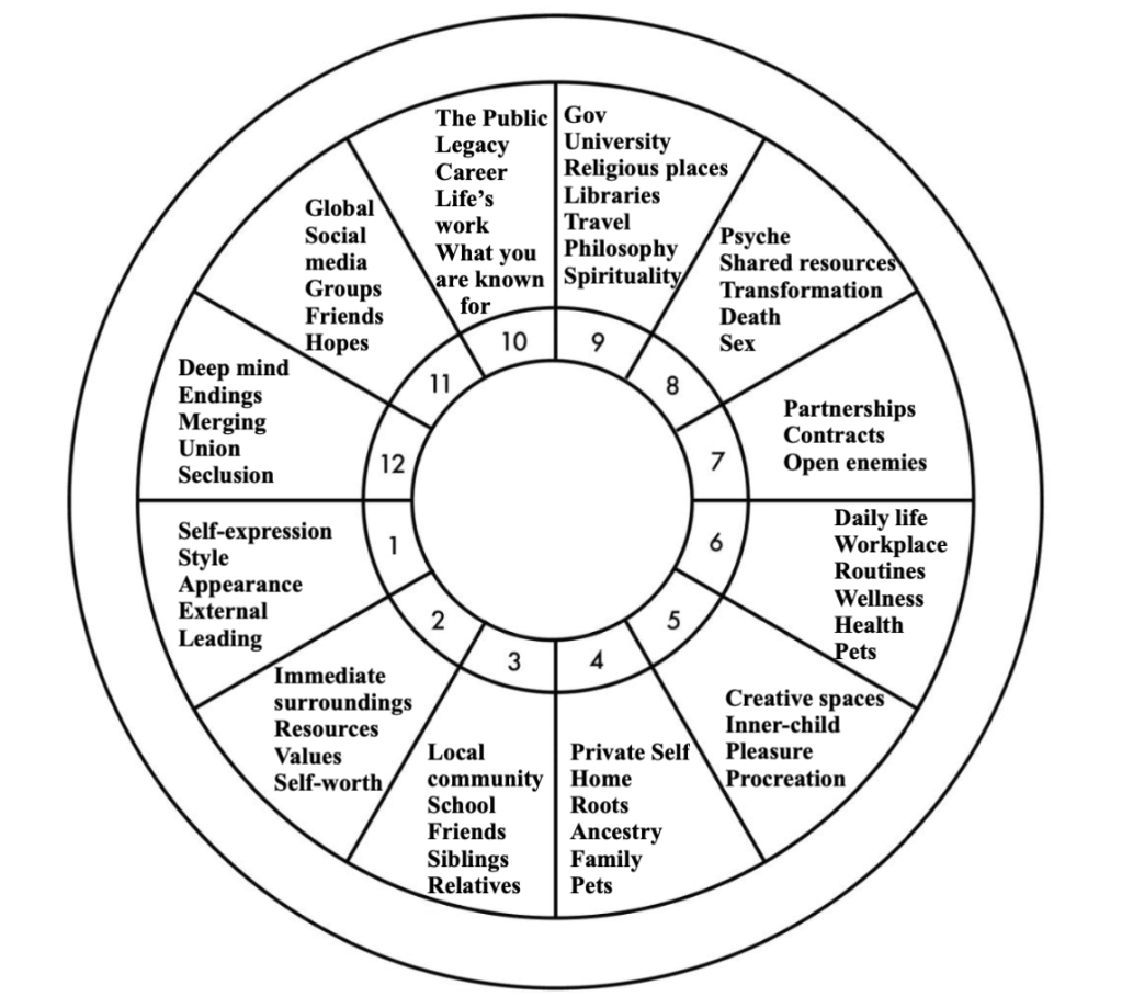 The houses in astrology are the areas of life where events play out. They represent the setting, location, and place both physical and non-physical.